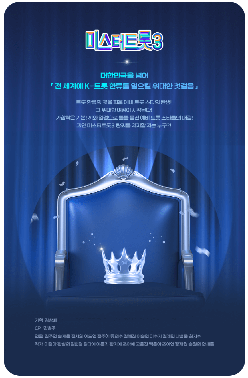 아래 방청신청을 통해 <미스터트롯3> 방청신청을 바로 하실수 있습니다.
